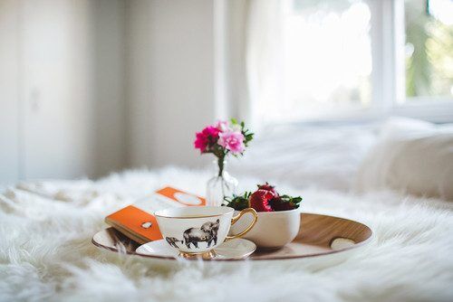 Заведите привычку подольше нежиться в постели по выходным: чтобы ни говорили гуру тайм-менеджмента, иногда важно давать себе шанс на «неправильный» отдых. Завтрак в постель — сомнительная идея из фильмов, которая на практике больше запоминается бутербродными крошками в постели. А вот устроить утреннюю кофейную церемонию вполне можно: главное, заведите устойчивый поднос (лучше всего для этих целей подойдет модель с подушкой внизу). Кстати, он пригодится вам и вечером — чтобы транспортировать чай и десерты из кухни в гостиную.