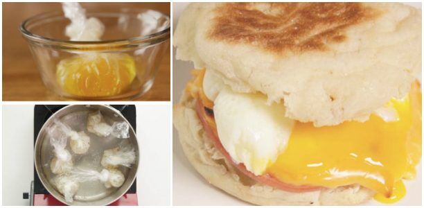 Все еще не умеете их готовить? Вам поможет пищевая пленка. Положите ее на края миски, смажьте растительным маслом, разбейте в нее яйцо, а затем сверните, крепко затянув концы. После этого просто бросьте яйцо в кипящую воду и подождите 4-5 минут.