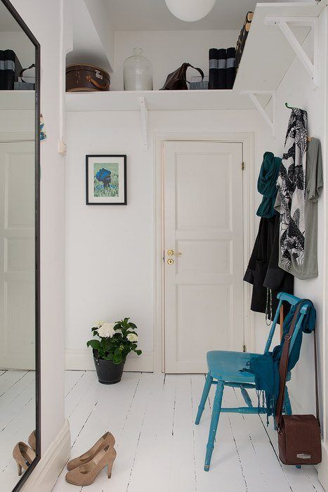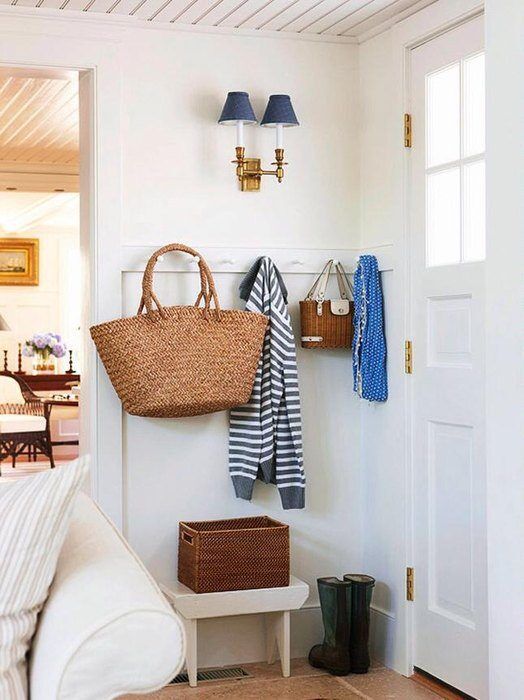 Без крючков в маленькой прихожей просто не обойтись. Их можно установить в несколько рядов или в хаотичном порядке. Сегодня производители мебели предлагают крючки, которые способны не только выполнять свою прямую функцию, но и украшать интерьер. Достаточно подобрать такие аксессуары под цвет двери, коврика или других предметов мебели, и пространство заиграет стильными красками.