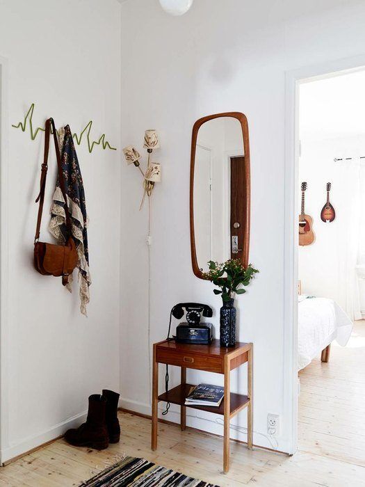 Как известно, зеркала способны визуально менять пространство – раздвигать стены, удлинять комнату, делать её светлее и просторнее. Поэтому, даже в самой маленькой прихожей нужно найти место для зеркала. Хорошо, если в нём будут отражаться источники освещения или окна, что позволит наполнить тёмную прихожую дополнительным светом.