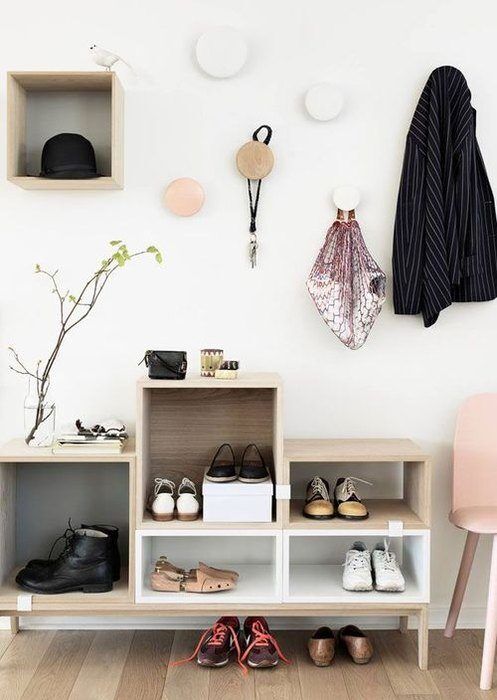 Для хранения обуви можно использовать открытые модульные системы. Их легко комбинировать по цвету и форме, самим составляя удобный предмет мебели. Плюс такой мебели в том, что она не утяжеляет пространство и не визуально не «съедает» квадратные метры. Правда, при таком способе хранения нужно следить за тем, чтобы обувь всегда была в идеальном порядке, ведь она всегда на виду.