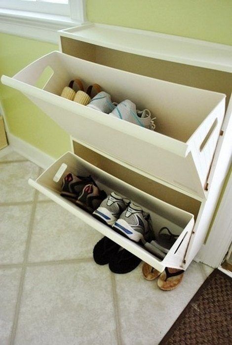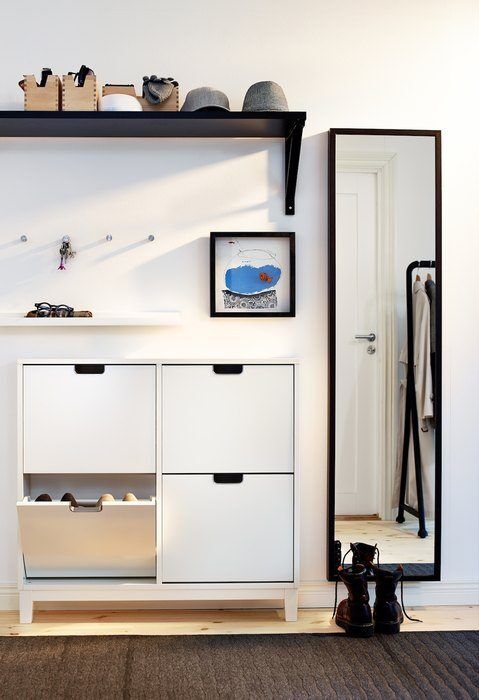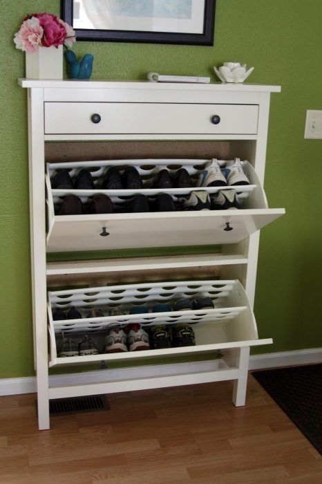Компактная обувница способна здорово сэкономить пространство. Внешне она выглядит, как небольшой комод. Во многих моделях хранить обувь можно в вертикальном положении, поэтому такие предметы мебели имеют небольшую глубину и отлично подходят для маленьких пространств. К тому же, они позволяют скрыть обувь с глаз, и сделать интерьер прихожей более опрятным.