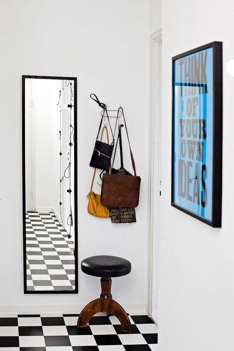 Постеры в стекле украсят прихожую, придадут ей стильного вида и тоже сыграют на зрительное увеличение пространства. За счёт того, что свет будет отражаться от стекла, интерьер будет казаться лёгким и воздушным. Это же касается любых глянцевых поверхностей в комнате.