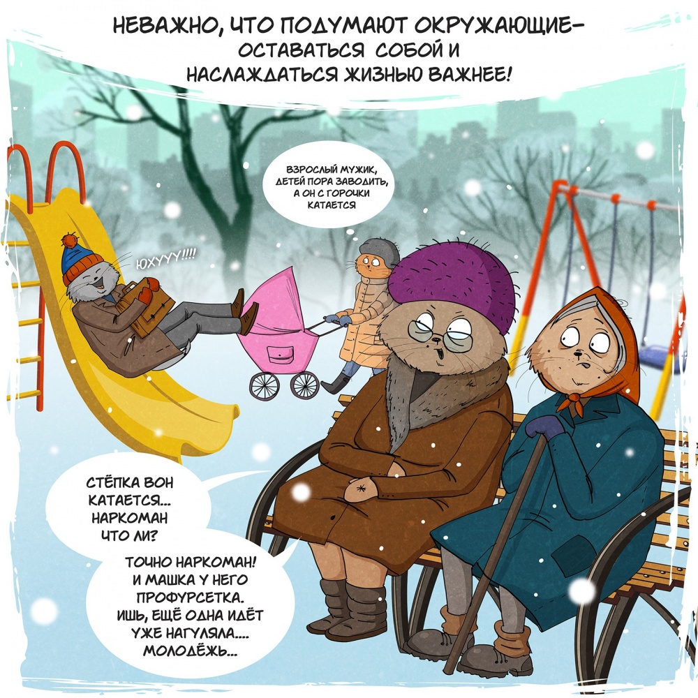 Поразительно, сколько в жизни истин, казалось бы, простых и очевидных, однако почему-то мы не спешим ими пользоваться. И только наступив несколько раз на грабли и в очередной раз потирая увесистую шишку на лбу, мы внезапно осознаём свои ошибки и понимаем, как просто было бы их избежать. Коты на иллюстрациях замечательного московского художника Bird Born рассказывают об этих маленьких, но непередаваемо важных жизненных истинах, которые помогут осознать, как много вокруг нас надуманных проблем и насколько просто наслаждаться каждым мгновением.