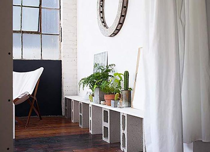 А как тебе такие полки из шлакоблоков? Это изобретение прекрасно подойдет и для создания мебели для зимнего сада.