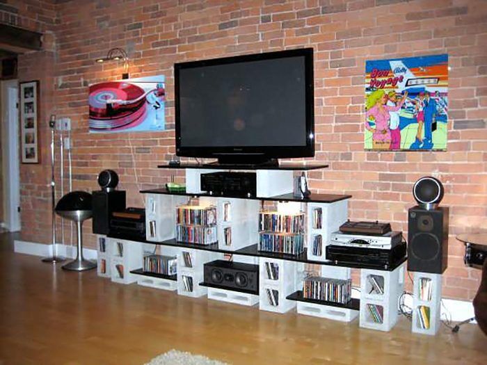 Ты только посмотри, даже стойка для аппаратуры может быть изготовлена из шлакоблоков!