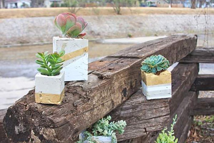 Эти вазоны изготовлены из бетона, а не из шлакоблоков, но идея декора та же. Бетон еще никогда не выглядел столь элегантно! А добиться такого эффекта можно при использовании аэрозольной краски.