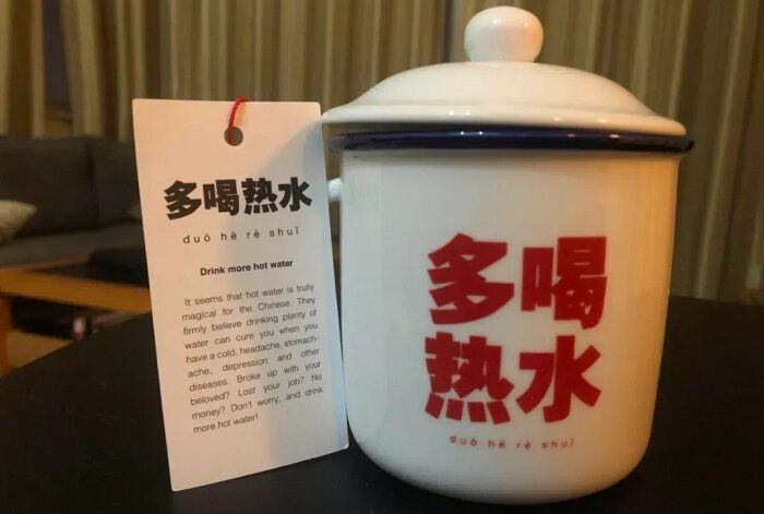 Также в списке была четкая информация о том, воду какой температуры нужно пить – только горячую. И в этом была своя логика – правительство пыталось всеми силами избежать новых вспышек холеры, дизентерии и прочих заболеваний. Чтобы китайцы не забывали о необходимости пить горячую воду, везде расклеивались агитационные плакаты, а в школах и на заводах вода выдавалась бесплатно. С каждым годом привычка все больше укоренялась, и сейчас жители Китая уже не представляют свою жизнь без горячей воды.