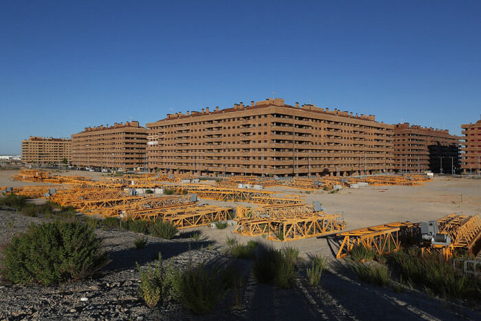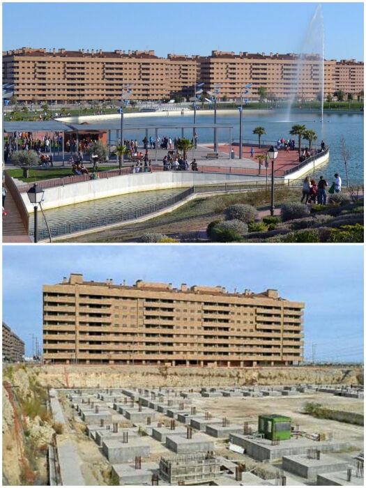 Всего в 35 км к югу от Мадрида в 2003 г. приступили к реализации амбициозного проекта по строительству нового города, получившего название «Манхэттен Ла Манчи». На пике строительного бума и миллиардер Франциско Эрнандо решил вложиться в строительство 13,5 тыс. квартир и соответствующей инфраструктуры. Комфортные квартиры, демократичные цены, близкое расположение к столице Испании – все это должно было привлечь потенциальных покупателей. Но нагрянувший кризис 2008 г. нарушил все планы. Власти и главный инвестор были вынуждены заморозить проект, в который уже вложили почти 9 млрд долларов.