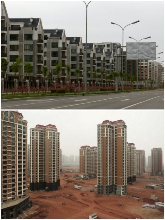 Проект строительства ультрасовременного города Кангабаши (Kangbashi) начали реализовывать недалеко от города Ордос, что на севере Китая. Всплеск экономики, и как следствие, строительный бум вдохновил власти на создание нового населенного пункта, рассчитанного на проживание 1 миллиона человек. Когда тысячи благоустроенных жилых домов, здания для различных учреждений, учебных, лечебных и культурных заведений, живописные парки, театры, аэропорт и даже уличные арт-объекты были уже готовы порадовать новых жителей, финансовый кризис свел на нет прекрасные начинания.