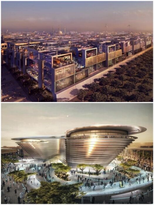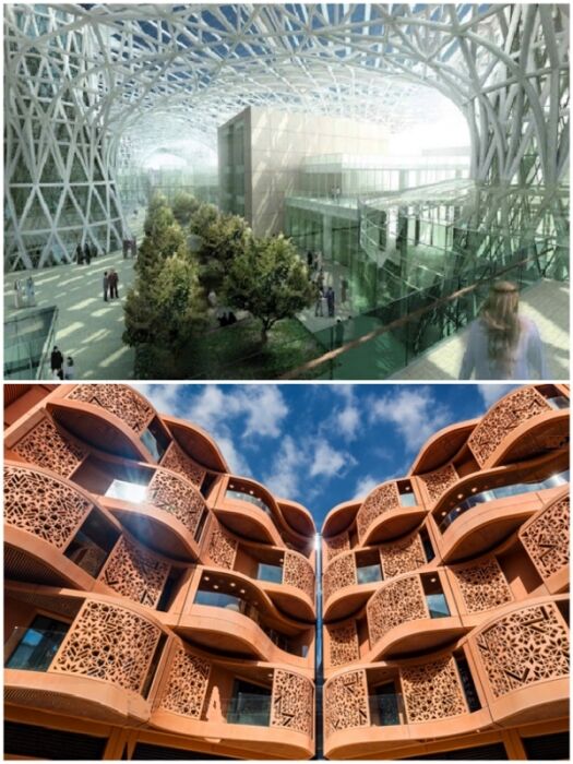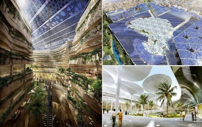 Футуристические формы архитектурных сооружений, «умные» системы, комфортная температура, современный быт и отсутствие автомобилей должны привлечь новую формацию людей (Masdar, ОАЭ).