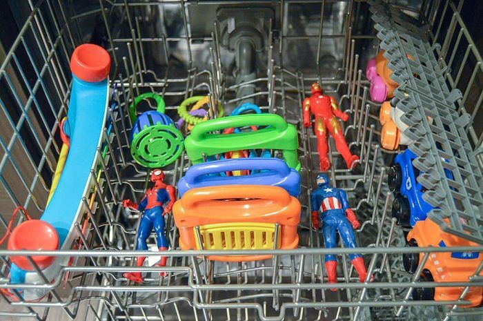 А у вашего ребенка тоже гора игрушек, которые вы не успеваете стирать? Есть хорошая новость. Если в чистке нуждаются пластиковые и резиновые игрушки, их необязательно мыть вручную. Да-да, никаких ванн и тазиков – просто положите изделия в посудомоечную машину и запустите привычный режим. Горячая вода устранит плесень, микробы и бактерии, благодаря чему игрушки станут абсолютно безопасными.