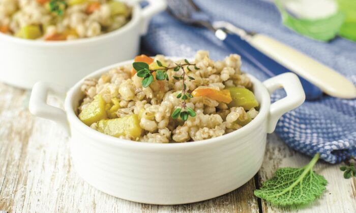 Перловка с овощами в духовке. \ Фото: kitchenbook.jp.