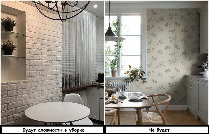 В последнее время в дизайнерских проектах часто можно увидеть оригинальные текстурированные поверхности – например, стены с известковым покрытием или полы с римской глиной. Выглядит очень эффектно, но в плане практичности – полный провал. Как и другие поверхности на кухне, они собирают на себе пыль, жир и другие загрязнения. Но, в отличие от гладкого шкафчика или столешницы, которую можно просто протереть влажной тряпкой, текстурированные стены так просто не отмоешь. Придется приложить немало усилий, чтобы привести их в порядок, и вряд ли они того стоят. Кроме этого, мастера утверждают, что такие поверхности трудно устанавливать, красить и ремонтировать. А если в какой-то момент вы захотите их демонтировать, появится еще масса проблем – они сложные не только в установке, но и в удалении.