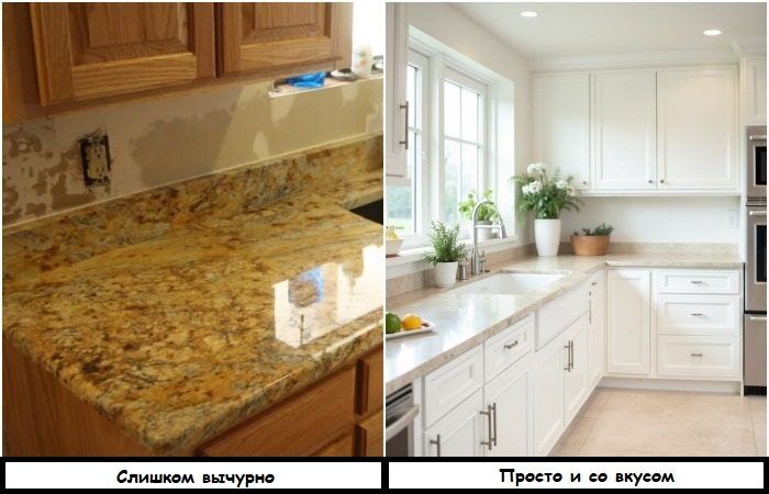 Еще одним трендом 2025 года были яркие столешницы, а также модели с разнообразными узорами. Насыщенный бордовый, изысканный золотой, глубокий черный – все эти оттенки на фотографиях выглядят очень эффектно, но в жизни оказываются тяжелыми для восприятия. Долговременным решением такие столешницы тоже не назовешь – в следующем году модными станут приглушенные оттенки, и кухня сразу будет казаться устарелой. Кроме того, на них очень заметны любые повреждения, например, царапины или пятна, которые не отмываются.