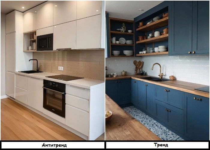Одни кухни годами остаются модными и актуальными, а другие уже через пару лет кажутся устаревшими. Да, сначала они вызывают бурный ажиотаж, восторг и желание наслаждаться красивым интерьером, сидя за столом с чашечкой кофе, но когда дело доходит до обычных «кухонных» будней, энтузиазм пропадает. Дело в том, что многие дизайнерские приемы не подходят для кухонь, на которых часто готовят. Они могут лишать комнату уюта, быть непрактичными в уходе и просто создавать массу проблем в ходе эксплуатации. Рассказываем о таких трендах более подробно, чтобы уберечь вас от ошибок и скорого ремонта.