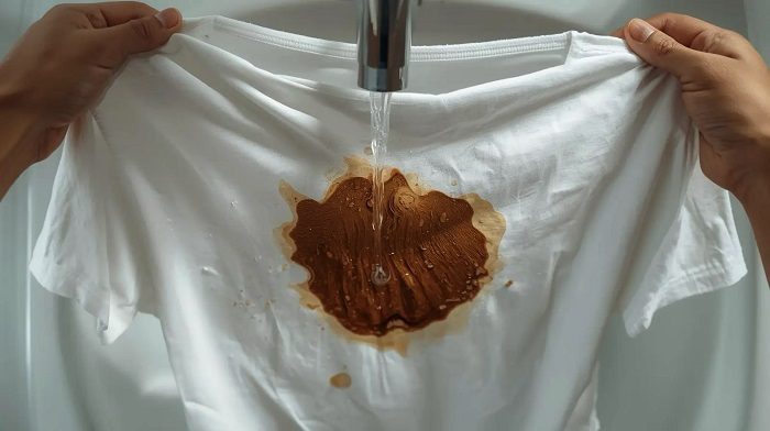 • Для пятен, которые оставили капучино, лате и прочие напитки с молоком, порядок действий аналогичный, только использовать нужно не горячую, а холодную воду.