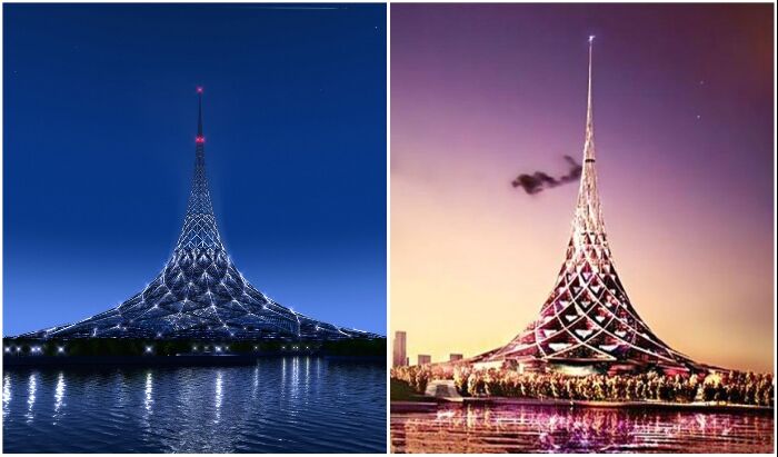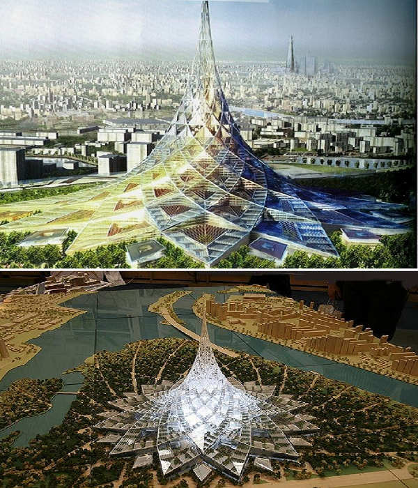 Теперь не осталось шансов увидеть весьма изящную башню, имеющую гиперболоидную форму конструкции, покрытую диагональной сеткой, потому что концепт признали «чуждым архитектуре Москвы, нарушающим восприятие сложившейся городской среды». Хотя задумка была и оригинальной, и довольно практичной учитывая, что это все-таки культурно-деловой центр с множеством офисов, культурных учреждений, бутиков и даже жилых апартаментов, что облегчило бы поиски работы, да и жители района могли бы в считанные минуты до нее добраться. Плюс ко всему все расчеты концепта базировались на использовании альтернативных источников энергии для обслуживания башни и принципах «зеленой» архитектуры.