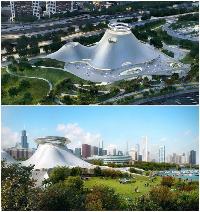 Так должен был выглядеть Lucas Museum of Narrative Art, если бы концепт был реализован в Чикаго (2014 г.).
