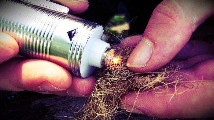 Добыть огонь можно при помощи фонарика, правда его придется разбить. Суть в том, чтобы освободить и оголить дугу лампочки. После этого подносим ее к сухому труту и нажимаем на кнопку «включить». Электрический заряд сделает всю работу.