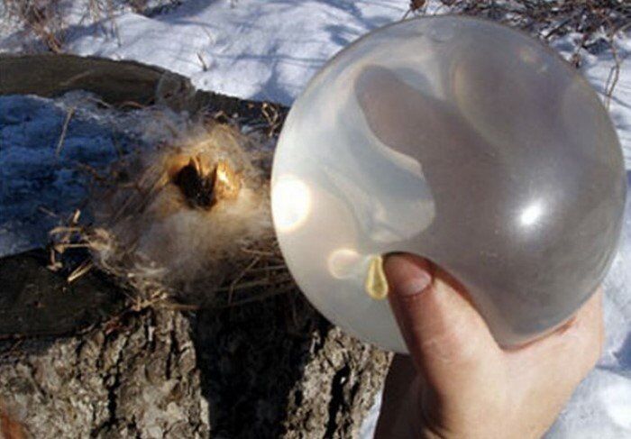 Средство предохранение или обычный более-менее прозрачный пакет можно использовать для разведения огня. Для этого потребуется наполнить силиконовое изделие водой и «поймать» на небе солнце. Собираем трут и используем наполненный презерватив в качестве линзы. Главное не переусердствовать с затягиванием!