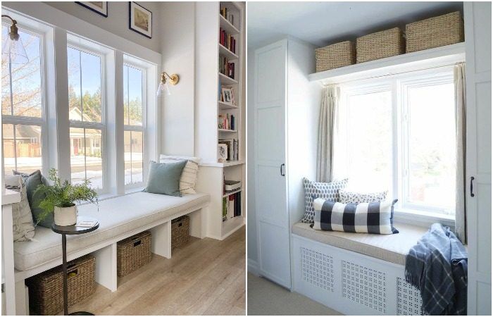 Сделайте под подоконником нишу, чтобы туда можно было складывать текстиль, постельное белье, подушки, сезонные вещи и пр. Ее можно оставить открытой, но тогда вещи придется хранить в корзинках, или закрытой, установив дверцу. Сам подоконник используйте в качестве столешницы или мягкого сидения. Для вдохновения взгляните на фото выше – это яркие примеры того, как воплотить идею в жизнь.