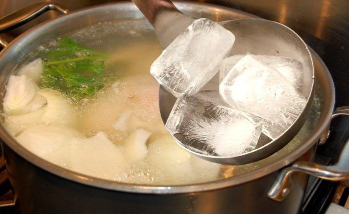 Добавьте в бульон кубики льда.
