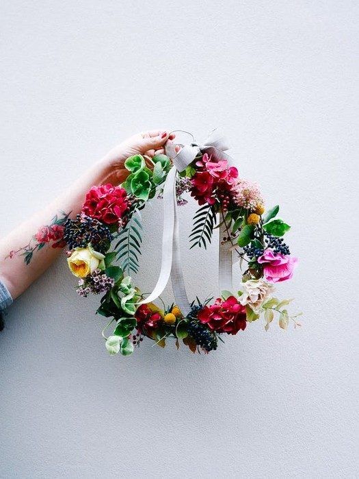 Также металлические вешалки очень удобно использовать как основу для венков. Хотите сделать венок на дверь, достаточно придать вешалке круглую форму и закреплять цветы или листья вокруг нее.