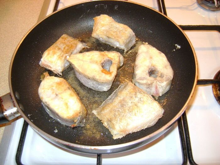 Поэтому никогда не кладите рыбу на холодную сковороду. Во-первых, она будет прилипать, а во-вторых, развалится на кусочки. Также не стоит экономить на масле – без него аппетитная корочка не получится. Боитесь, что из-за чрезмерного количества масла готовое блюдо получится слишком жирным? Тогда после обжарки выложите готовые куски рыбы на бумажное полотенце – оно быстро впитает лишний жир.