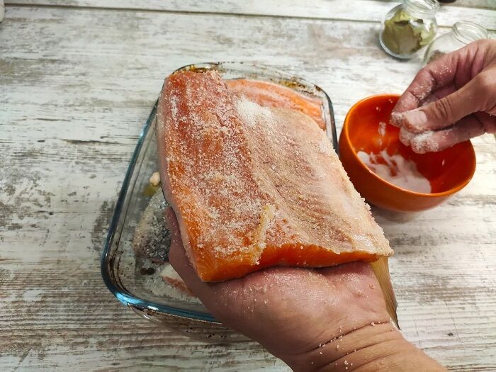 Рыба не нуждается в большом количестве соли в процессе жарки – иногда нужно просто слегка присолить масло. Но при варке обязательно нужно использовать большое количеств специй, чтобы улучшить вкус блюда, сделать его насыщеннее. Мы говорим не только о соли и перце – стоит добавить лавровый лист, зелень и даже лимонные корочки. Также старайтесь не использовать много воды, чтобы весь вкус не ушел бульон (исключение – уха, рыбный суп). В противном случае рыба получится очень пресная.