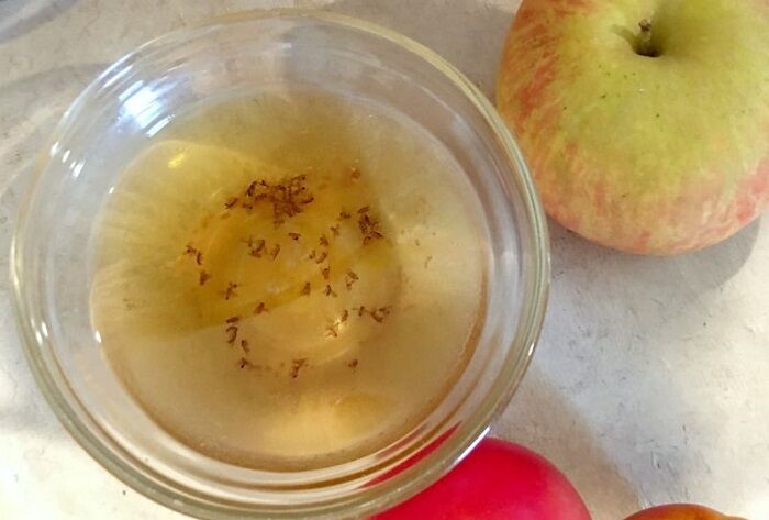 Возьмите небольшую тарелку, налейте в нее яблочный уксус, подогрейте в микроволновке и оставьте на кухонном столе. Мошки не смогут устоять перед ароматом и обязательно слетятся, чтобы отведать «угощение». Если яблочного уксуса пол рукой не оказалось, налейте в блюдце немного ароматизированного геля для мытья посуды и добавьте несколько капель обычного уксуса.