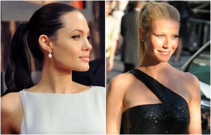 Этот вариант больше всего подходит обладательницам длинной, лебединой шеи. Например, 46-летняя Анджелина Джоли и 48-летняя Гвинет Пэлтроу часто пользуются данным приемом. Волосы, зачесанные назад или собранные в конский хвост, делают акцент на красивой шее, отвлекая внимание от мелких морщин и прочих недостатков. Если убрать пряди от лица, появится шанс сделать его более свежим, а овал – более четким и пропорциональным. Да и вариантов подходящих причесок существует огромное количество. Одних вариантов хвоста – около 20 примеров, а то и больше.