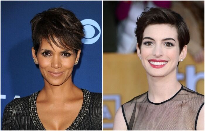 Если длинные волосы, как у Рапунцель – это не ваша история, и вам намного больше нравятся короткие стрижки, за которыми гораздо проще ухаживать, то есть отличный вариант прически. Вместо четких линий, которые привлекают излишнее внимание к неидеальному овалу лицу, и ровной челки, делающей акцент на морщинках в уголках глаз, выбирайте ассиметрию. Рваная стрижка с высветленными структурными прядями, о которых мы упоминали выше, помогут визуально выровнять лицо, отвлекая от маленьких несовершенств. Кстати, знаменитости очень часто пользуются этим методом. Стоит лишь взглянуть на Холли Берри, которая недавно снова обновила свой имидж – в свои 55 лет актриса выглядит гораздо моложе, и не последнюю роль в этом играет удачная стрижка.