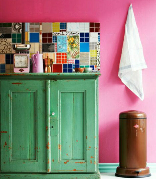 Фартук из разномастной керамической плитки с яркими узорами и рисунками оживит интерьер и станет изюминкой любого пространства.