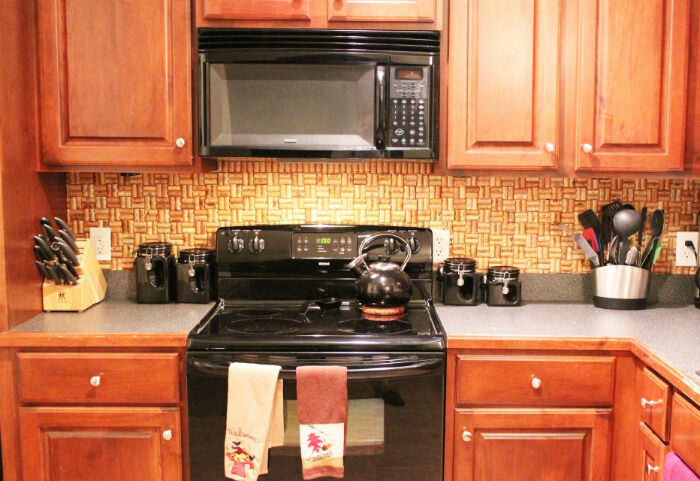 Винные пробки - весьма оригинальный и доступный материал для создания стильного кухонного фартука, который, несомненно, станет достоинством современного интерьера.