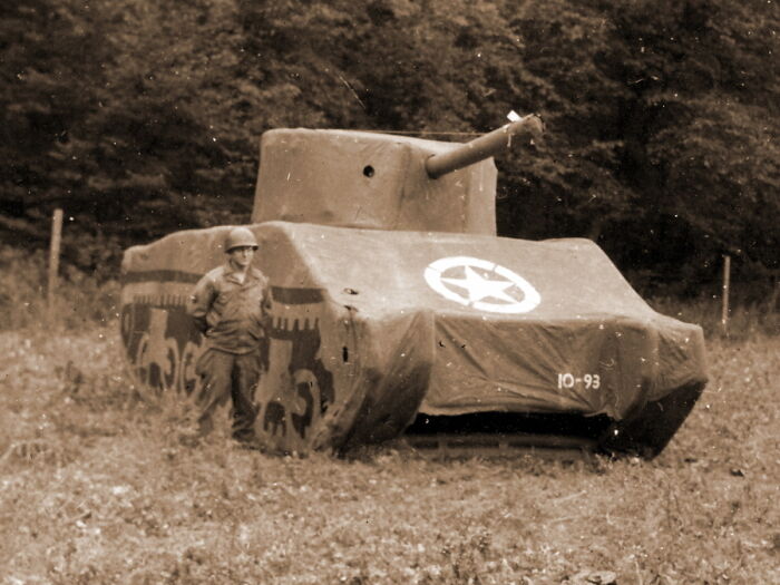 Создали «Армию призраков» в AEF 20 января 1944 года, проанализировав опыт британских инженеров и специалистов по камуфляжу во время африканской кампании. Там, британские «шутники» умело маскировали грузовики, танки и бронемашины под представителей дикой природы Африки: слонов, носорогов, жирафов. Опыт оказался исключительно удачным, а потому его переняли и американцы, адаптировав к европейскому театру боевых действий. Полная численность «Армии призраков» составляла всего 1 100 военнослужащих. Для сравнения, общая численность американцев, англичан и французов, прошедших через операцию «Оверлорд» (высадка во Франции в 1944 году) составила 2.8 млн человек.