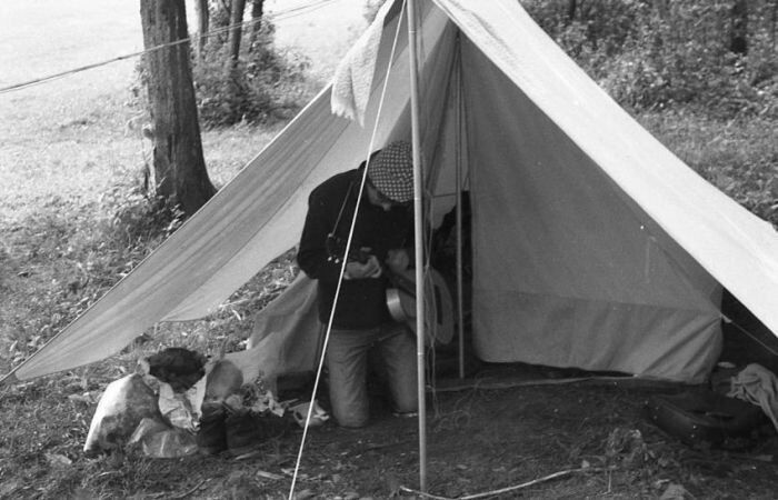 В особо красивых и живописных местах туристы предпочитали оставаться с «ночевкой». На этот случай им нужна была палатка. Несмотря на дефицит многих товаров в СССР, водоустойчивые палатки граждане доставали без особого труда. В продаже имелись варианты этих изделий из брезента, рассчитанные на двух, четырех и даже восьми людей. Те же любители путешествий и отдыха, которым хотелось более просторное «жилье» на природе, шили палатки сами. Не всегда для этих целей покупали новый брезент. Порой палатки шили из парашютов. В них могли свободно разместиться до 5 человек. Палатки, сшитые из парашютов, весили намного меньше готовых палаток. Вес последних мог достигать 12 кг. Несмотря на то, что палатку, изготовленную из парашютов, трудно было собрать и установить, но она отличалась удобством.