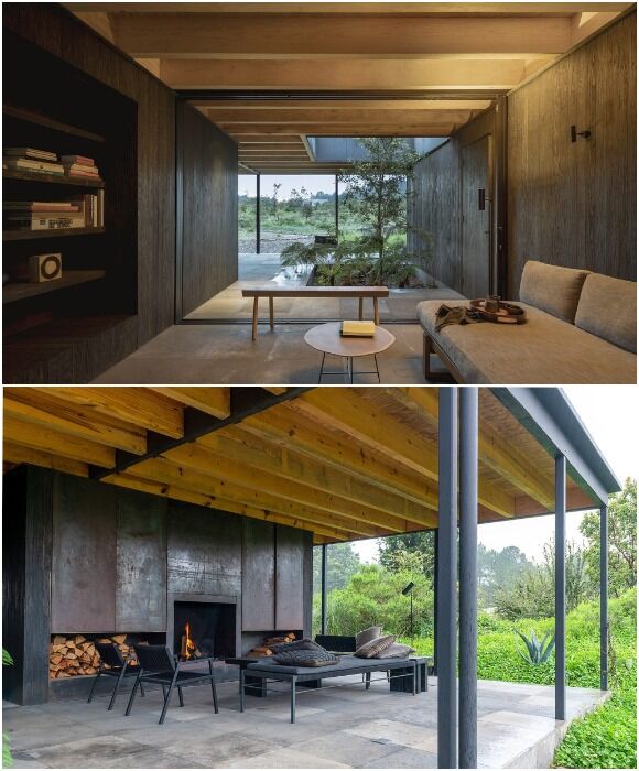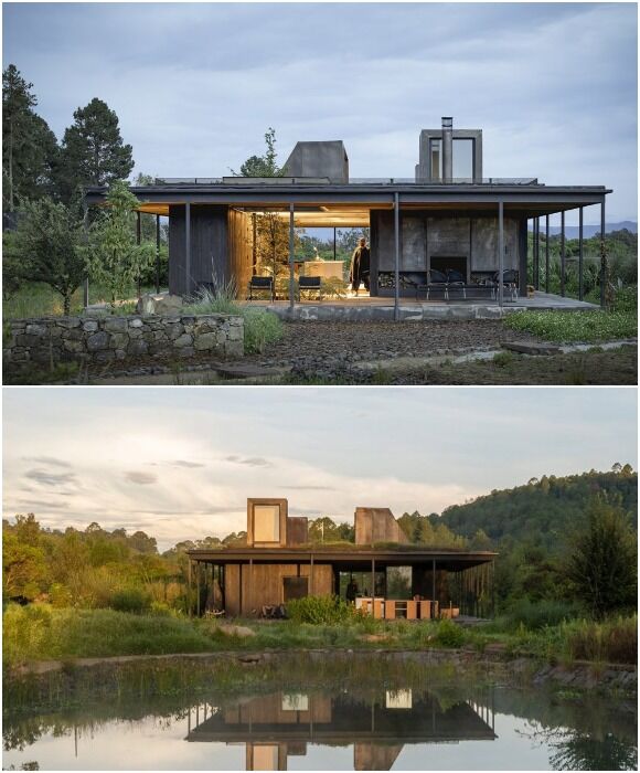 Дом Rain Harvest Home, расположенный в природном заповеднике Валье-Браво у подножия величественного вулкана Невадо-де-Толука (Мексика), был построен по всем правилам устойчивой архитектуры, чтобы обеспечить его жильцов приятным местом отдыха в привычных для городских жителей бытовых условиях. Загородная резиденция состоит из трех объектов: жилой дом, студия и баня. Благодаря «зеленой» крыше все три структуры идеально вписались в захватывающий дух пейзаж предгорья, при этом подобное кровельное покрытие выполняет сразу несколько полезных функций, главными из которых является энергоэффективность и место сбора дождевой воды.