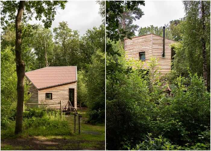 Пятиугольная избушка Holiday Home — это экологичный модуль, построенный из переработанной древесины и биоразлагаемых материалов. Цель строительства небольшого домика состояла в том, чтобы создать уютное место для отдыха, максимально гармонирующее с лесным окружением пригорода Брасхата. Помимо использования натуральных материалов, прошедших вторичную переработку, специалисты студии Polygoon Architectuur постарались максимально ограничить воздействие на почву, установив конструкцию на 11 узких опорах, тем самым приподняв ее над землей. Рациональность такого решения благоприятно сказалась и на сохранности древесины, что значительно продлит ее срок эксплуатации.