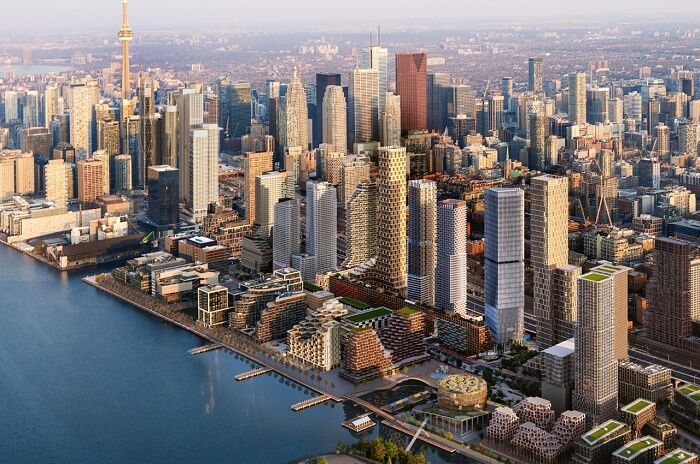 Реновация набережной Торонто нацелена на создание экологически чистого района с доступным жильем и вертикальным озеленением всех архитектурных объектов (концепт Quayside).