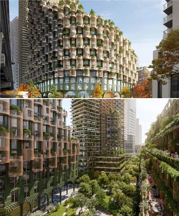Не только частные загородные резиденции или виллы для эко-курортов могут соответствовать требованиям устойчивой архитектуры и биофильному дизайну. В скором времени в Торонто, например, начнется реализация проекта уникального жилого комплекса под названием Timber House, который станет самым большим зданием, построенным из натурального дерева в Канаде.