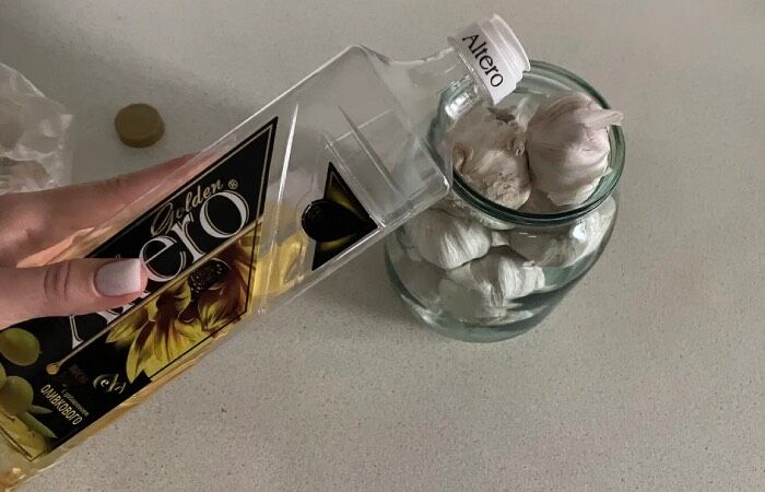 Многие просто убирают его в темное место. Но если вы ходите, чтобы чеснок мог храниться до полугода, то следуйте нашей инструкции. Заполните стеклянную банку головками чеснока и залейте их водой. После чего добавьте немного растительного масла и уберите банку в темное место. Именно такое хранение позволит надолго сохранить чеснок свежим и ароматным.