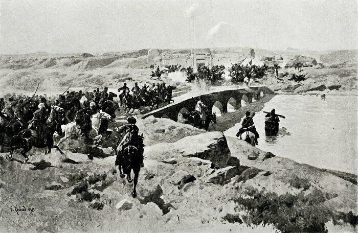 Ф. Рубо. Бой на Кушке (рисунок из статьи «Кушка», «Военная энциклопедия Сытина»). /Фото: upload.wikimedia.org Видный государственный деятель конца XIX-начала XX веков лорд Керзон дал точное объяснение мотивировки англичан: «Англия существует до тех пор, пока она владеет Индией. Не найдётся ни одного англичанина, который станет оспаривать, что Индию следует охранять не только от действительного нападения, но даже от одной мысли о нем. Индия, как малое дитя, нуждается в предохранительных подушках, и такой подушкой со стороны России является Афганистан». Эта страна считалась главными воротами в Индию, а, значит, именно её и надо было сделать барьером на пути возможной русской экспансии. С лёгкой руки англичан Афганистан, не имеющий полезных ископаемых, через который не проходят никакие торговые пути, раздираемый непрерывными внутренними междоусобицами, стал осью мировой политики. С целью полного утверждения в регионе Англия вела войну с Афганистаном (первая война – с 1831 по1842 гг., вторая – с 1878 по1880 гг.). В 1885 году разразился афганский кризис – обострение отношений между Англией и Россией, которое едва не привело к началу вооружённого конфликта. Причиной осложнения межгосударственных отношений стало овладение Мервским оазисом и продвижение в сторону Пенджде русской армии под командованием генерала А. В. Комарова. В1884 году в результате переговоров жителями Мервского оазиса в результате переговоров с представителями администрации Закаспийской области было добровольно принято российское подданство. Такое же решение приняли и другие туркменские племена, проживавшие в Пендинском и Иолатанском оазисах. Но самый южный оазис Пенде на реке Мургаб с 1833 года контролировался афганским эмиром. Англия (под управлением которой находился тогда Афганистан) требовала от него остановить продвижение русских к Пендже – в ста километрах от него на юг лежал древний Герат, за которым по равнинной части Афганистана можно было легко попасть в Индию. Россия предложила эмиру признать Пендже российской территорией и обозначить чёткую границу между странами. Афганцы не захотели уступить спорную землю мирным путём, вопрос был решён в боестолкновении русского и афганского отрядов на реке Кушка: отряд эмира проиграл сражение, а жители Пендже изъявили желание стать подданными России. Британии не нравилось, как складываются события, но России все же удалось путём дипломатических переговоров оставить за собой Пендинский оазис. А в 1887 году была официально утверждена русско-афганская граница. В период с 1890 по 1894 годы Россия и Англия соперничали в вопросе контроля над Памиром – горной страны, богатой полезными ископаемыми (золото, горный хрусталь, самоцветы, рубины, лазурит и другое), но не имевшей чётких границ. Это вызывало тревогу у соперников: Россия могла безо всяких нарушений проникнуть в Кашмир, Англия и Афганистан – в Ферганскую долину. Кроме них Памиром живо интересовался Китай. Англичане в 1891 году вторглись в северные земли современного Пакистана. Русские ответили встречной экспедицией, поэтому обеими сторонами было заключено соглашение, по которому одна часть Памира отходила России, другая – Афганистану, а ещё одна – к Бухарскому эмирату, контролируемому Россией. В 1894 году, чтобы снизить британскую активность в регионе, русские обустроили секретную к