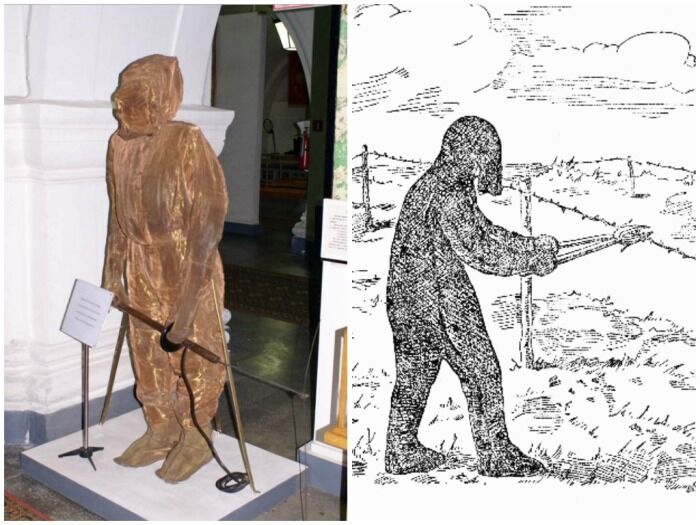 Спецкостюмы типа скафандра, полностью покрывающие тело за исключением лица, изготавливались из медной проволоки и имели специальную изолирующую подкладку / Фото: union.4bb.ru