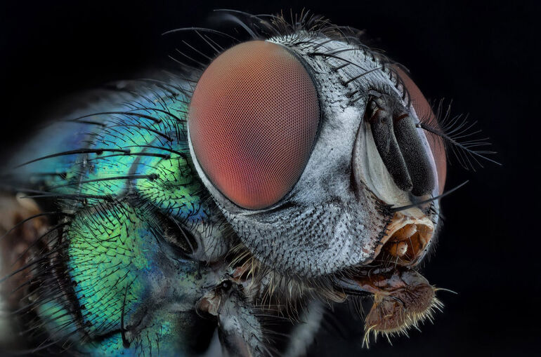 8. Полёт является одним из основных способов передвижения множества насекомых, помогающий им искать пищу, полового партнёра для размножения, расселяться и мигрировать, спасаться от хищников. Насекомые первыми на Земле выработали способность к полёту и поднялись в воздух, являясь единственной группой беспозвоночных, способной к данному типу передвижения. Скорость полёта некоторых насекомых (бражники, разнокрылые стрекозы, высшие мухи) достигает 15 м/с. (Фото Javier Ruperez):