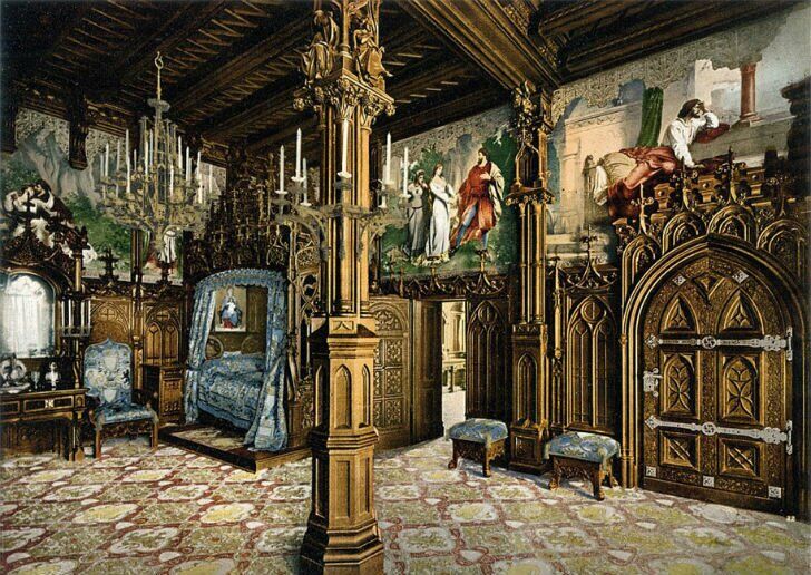 Спальня в замке Нойшванштайн. Сейчас замок является одним из самых популярных мест для туристов.