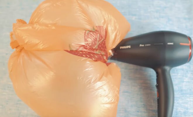 Другая хитрость тоже берет за основу элементарную физику. Она пригодиться для быстрого разогревания пищи, когда под рукой больше ничего нет. Нужно только положить еду в обычный целлофановый пакет, плотно завязать и направить внутрь поток горячего воздуха феном. Еда согреется очень быстро.