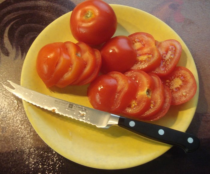 Такой нож предназначен для нарезки томатов.