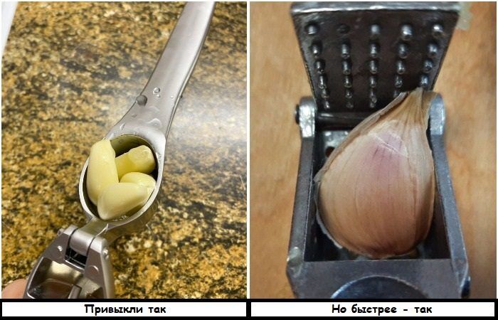 А вы тоже кладете в пресс уже очищенный зубчик чеснока? Оказывается, шелуху можно не снимать. Просто положите чеснок внутрь пресса и надавите на него, как обычно. В итоге кожура останется внутри, а внутренняя часть уже измельченная выйдет через отверстие. На первый взгляд это может показаться мелочью, но на деле существенно экономит время, особенно, когда вам нужно не пару зубчиков, а большая головка чеснока.