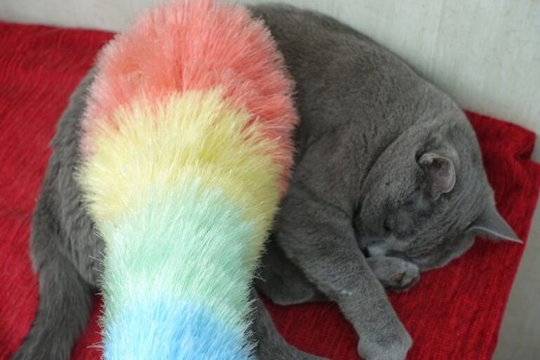 Когда мы принесли пипидастр домой, его сразу заценила наша котейка: и погрызть можно, и поиграться, и вообще штука занятная. Кошка также не против, чтобы этой штукой ее гладили. А что насчет пыли? Тут всё оказалось немного сложней. Полипропиленовая метелка довольно быстро электризуется и пыль скорее не собирает, а поднимает в воздух.